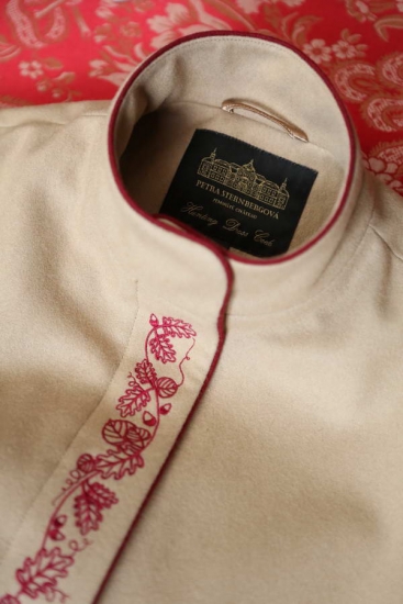 | Výšivka: | bohaté dubové a lipové listí vyšité nití bordeaux |