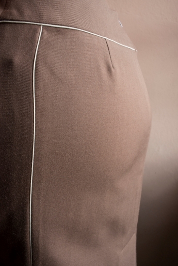 Gabardinová sukně perfektně ladí jak materiálem, barvou i střihem k saku pod stejným názvem. Velmi příjemně Vás potěší, že materiál není náchylný k ušpinění a také vysoká preciznost šití. Ke kostýmku je třeba nosit rozzářený úsměv v kombinaci s koženými doplňky veselejších barev.