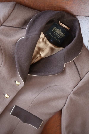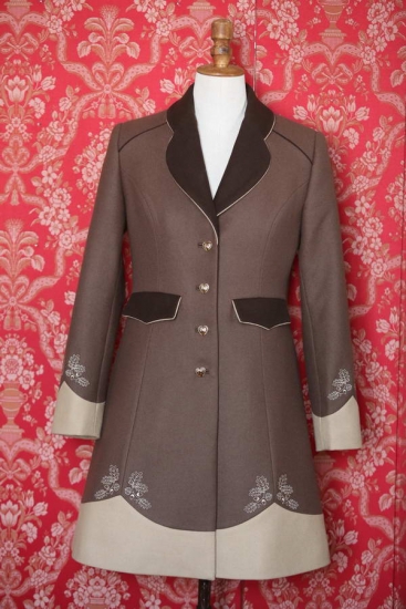 Milujete odstíny hnědé a těžko se Vám vybírá? Kabát ve dvou odstínech hnědé odlehčený cappuccinem Vám vždycky zlepší náladu, navíc jde o barvy praktické. Příhodný na vycházky, výstavy, výlety, reprezentativní části naháněk a honů, veletrhy, návštěvy i jako vhodný oděv při doprovázení partnerů či přátel na myslivecké akce. Kontrastní podšívka podtrhuje kouzlo okamžiku i při takové chvíli jako je odkládání oděvu.