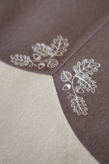 | Výšivka: | dubové a lipové listí vyšité hnědou nití |