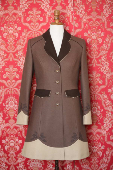 Milujete odstíny hnědé a těžko se Vám vybírá? Kabát ve dvou odstínech hnědé přizdobený tmavě hnědými decentními výšivkami Vám vždycky zlepší náladu, navíc jde o barvy praktické. Příhodný na vycházky, výstavy, výlety, reprezentativní části naháněk a honů, veletrhy, návštěvy i jako vhodný oděv při doprovázení partnerů či přátel na myslivecké akce. Kontrastní podšívka podtrhuje kouzlo okamžiku i při takové chvíli jako je odkládání oděvu.