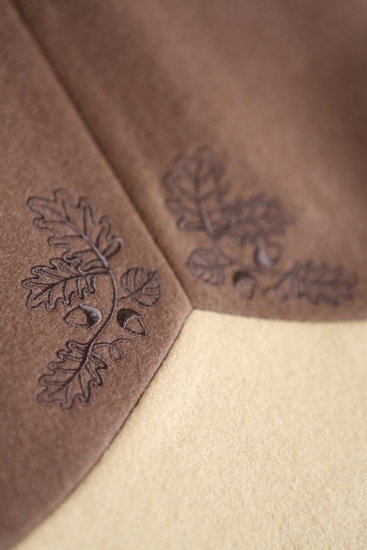 | Výšivka: | dubové a lipové listí vyšité tmavě hnědou nití |