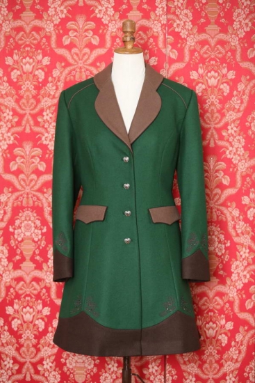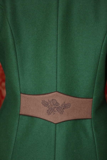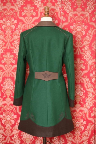 Některé vlněné kabáty šijeme jen mimořádně. Vznikají kombinacemi kousků vlny, která už nevystačí na více kusů. Každá nová várka vlny může mít totiž maličko jiný odstín, a tak z těchto kousků nemá smysl kompletovat řádně, ale mimořádně! Vždyť právě to mimořádné se stává velkou škálou objevů a radost.Očekává se, že přijdete v zeleném? Dovolte si ten luxus podtrhnout zelenou dvěma odstíny hnědé! Budete se cítit báječně. Kabát je příhodný na vycházky, výstavy, výlety, reprezentativní části naháněk a honů, veletrhy, návštěvy i jako vhodný oděv při doprovázení partnerů či přátel na myslivecké akce. Kontrastní podšívka podtrhuje kouzlo okamžiku i při takové chvíli jako je odkládání oděvu.