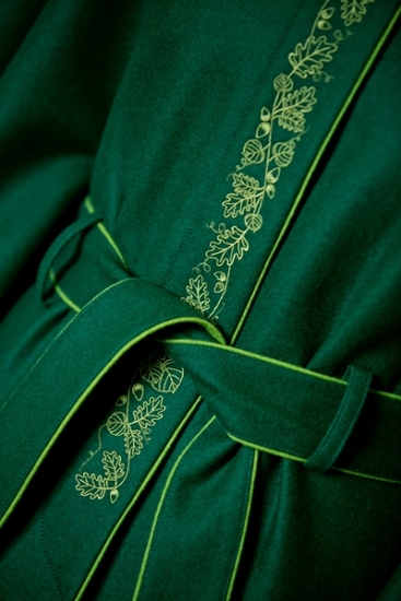 | Výšivka: | bohaté dubové a lipové listí vyšité světle zelenou nití |
